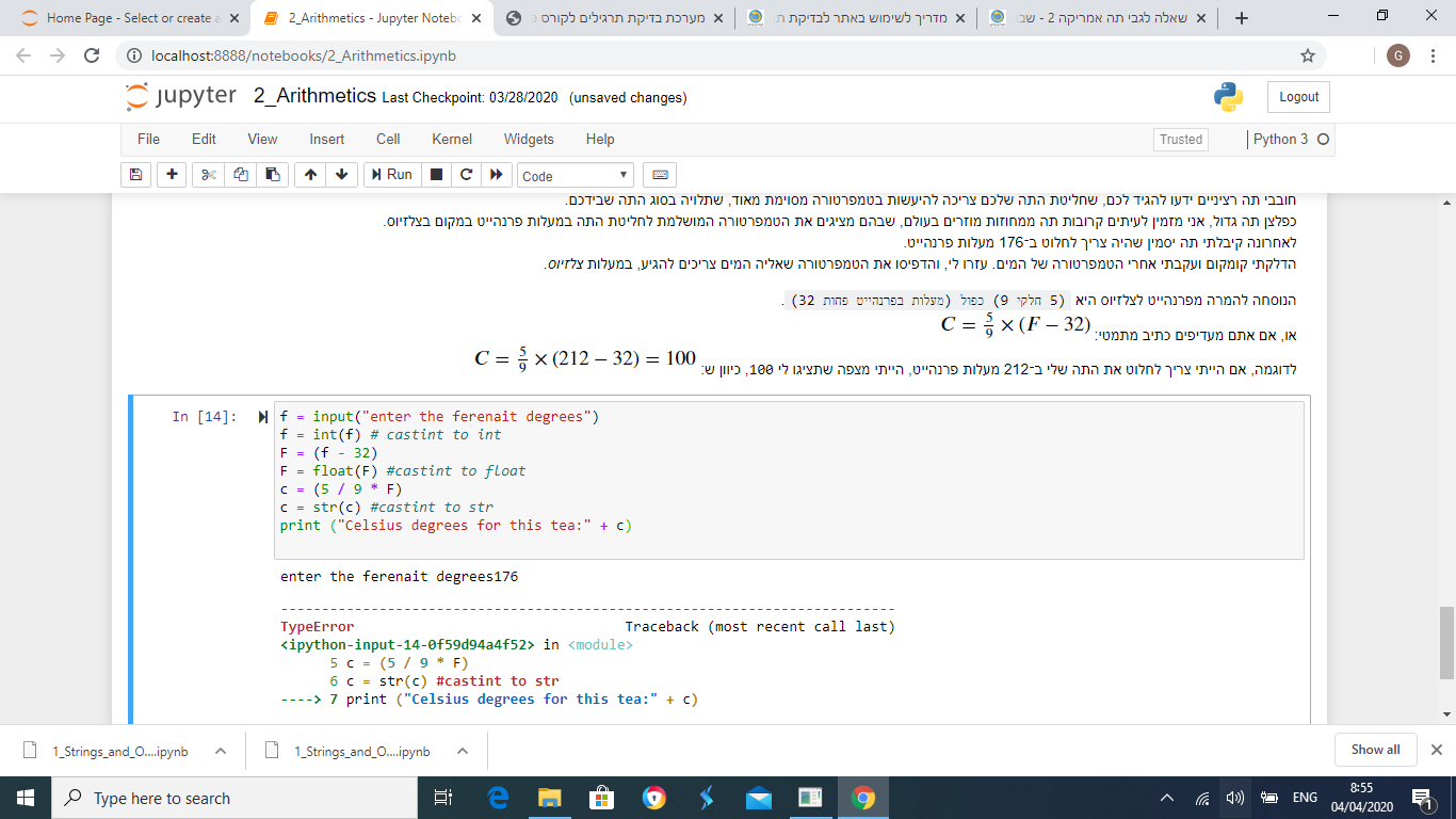 היי, תשים לב שבשאלה הספציפית הזו לא ביקשו להשתמש ב input (למדנו רק במחברת 5 בעוד השאלה הזו מופיעה עוד במחברת 2) אלא רק ביקשו להדפיס את הטמפרטורה בצלזיוס של 176 פרנהייט על פי הנוסחא שנתנו.