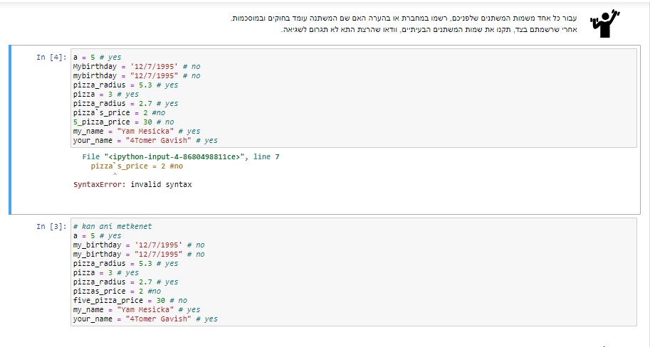 אשמח לדעת מה לא בסדר כאן. בתא התחתון זה לאחר התיקונים. מדוע חלק מהערכים מסומנים באדום? לא הבנתי מה אומרות ההערות. ועוד שאלה, איך מריצים את כל התא.? תודה