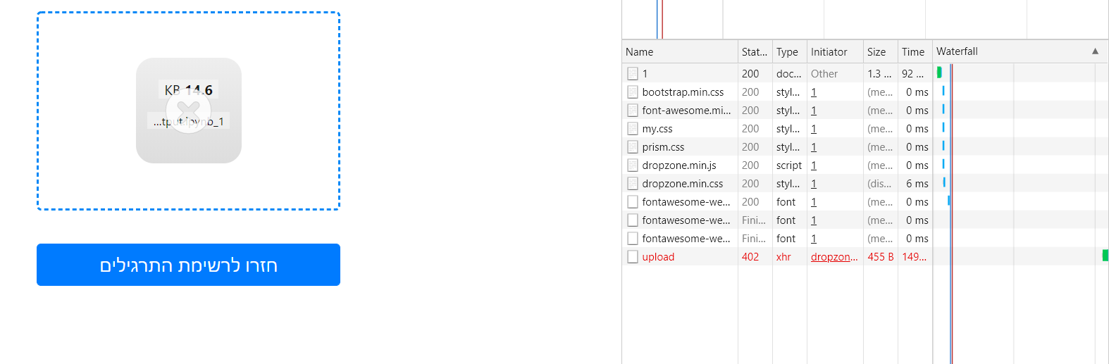 בבקשה תבדוק שיש בשורה הראשונה של התא שאתה רוצה להגיש
